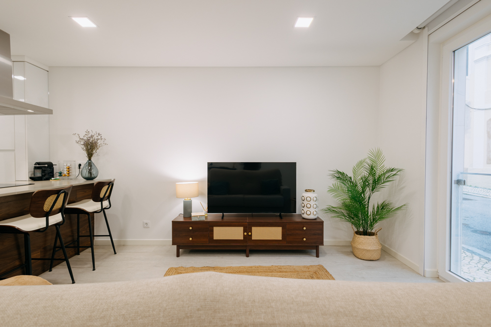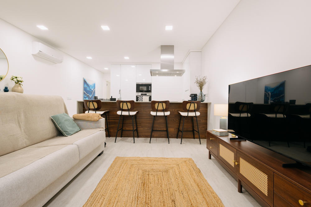 A Clarity Beach House é um apartamento T1 moderno, concebido com simplicidade e conforto em mente. A distribuição é prática e eficiente, com uma sala acolhedora ligada a uma cozinha totalmente equipada, criando um ambiente funcional e social.